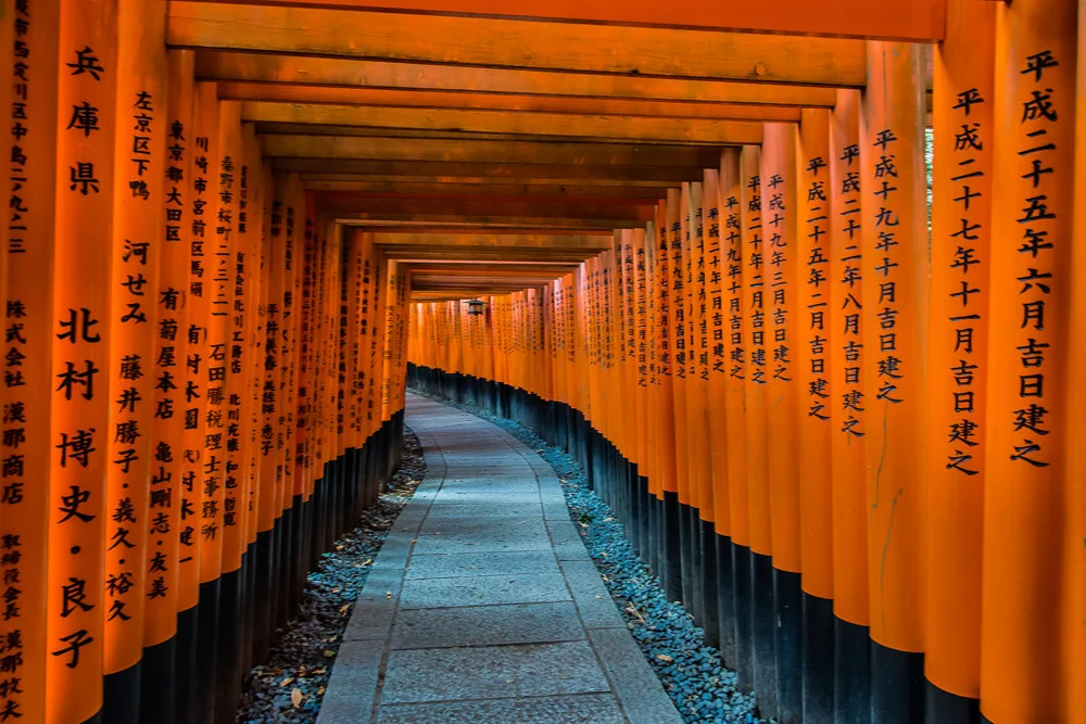 Fushimi-inari taisha - Large Canvas Fine Art Print in vermillion, blue, grey and black tones - Free shipping