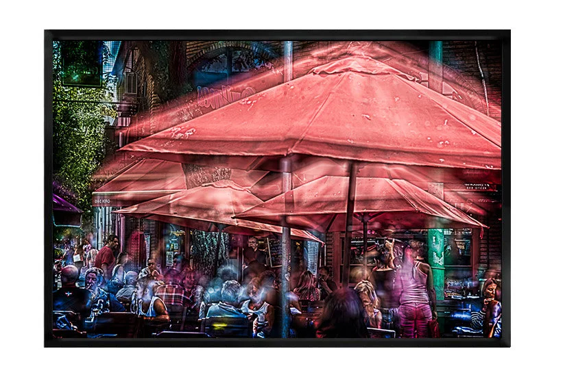 Poet's Blues assage Cafe - Impressionist Photography Large Canvas Fine Art Print in blue and coral tones - Free shipping
