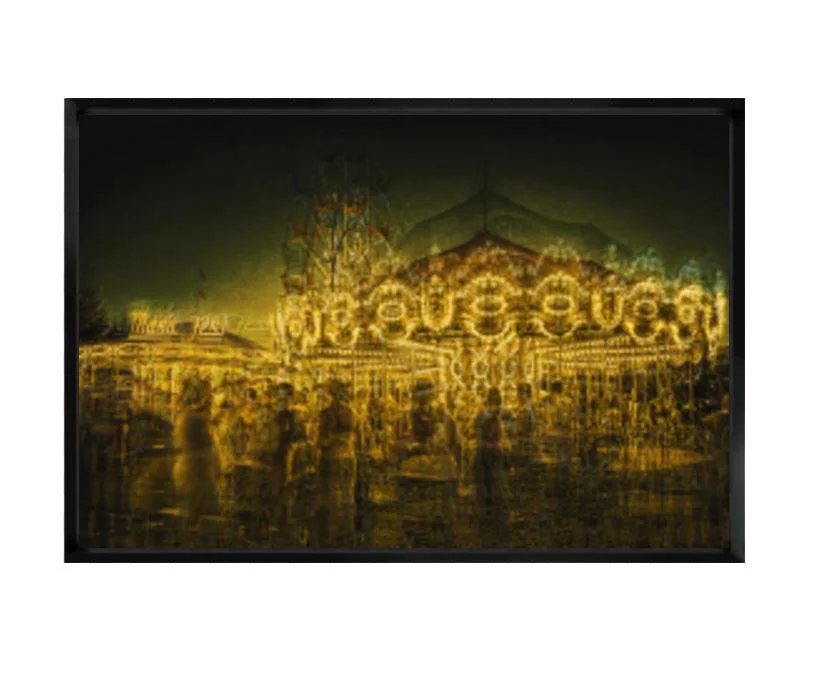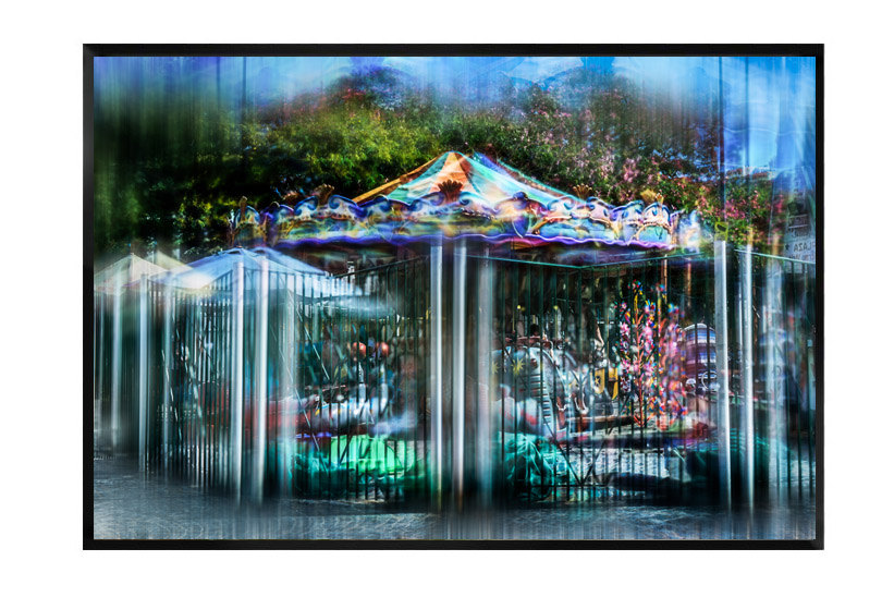 The Carrousel- Impressionist Photography Large Canvas Fine Art Print in blue, teal and brown tones - Free shipping