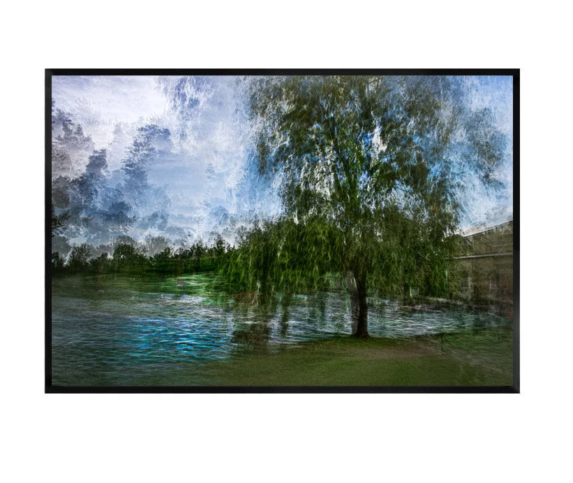At the pond - Impressionist Photography Large Canvas Fine Art Print in blue, grey and green tones - Free shipping