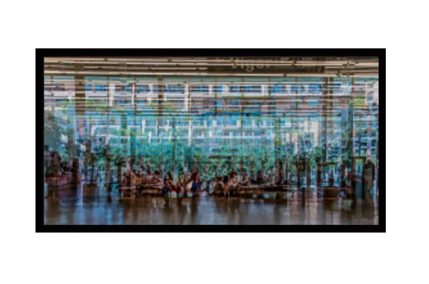 The Atrium - Impressionist Large Canvas Fine Art Print in blue, teal and brown tones - Free shipping