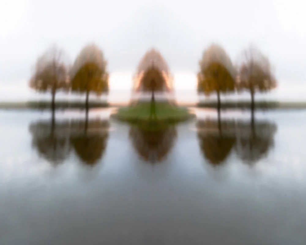 Imaginary Islands - a fantastic impressionist styled photograph featuring five trees on islands in a style that evokes a dreamscape.