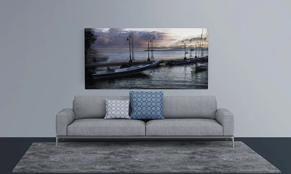 We work with a world-class fine-art printer with facilities in Canada and the US. Their gallery quality canvas is authentic 450 gms 100% cotton produced in Austin, Texas. Each canvas print is laminated for UV protection, ensuring your print does not fade over time and is hand stretched to ensure a fine art display quality image.